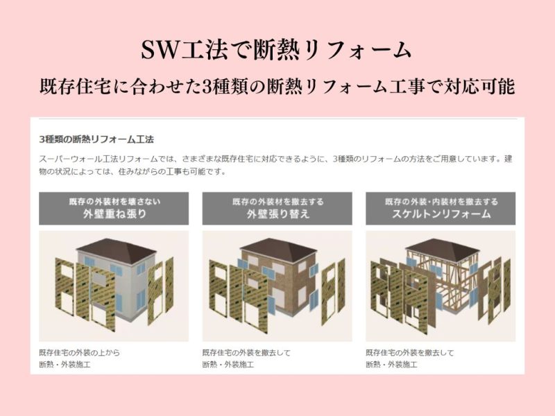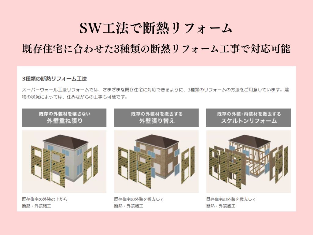 SW(スーパーウォール)工法の断熱リフォームについて、分かりやすくご紹介します。