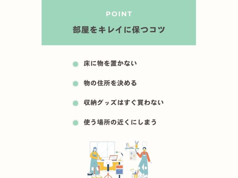 お掃除は衛生面を保つため、片付けはお部屋をキレイに保つため。