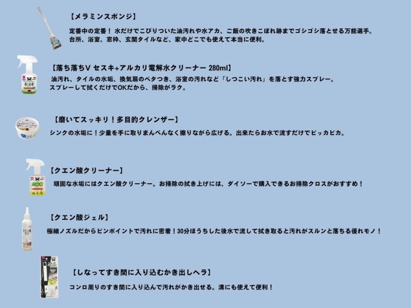 年末の大掃除が少しでも楽になるよう、1年を通して100円ショップのお掃除グッズを活用し、汚れの蓄積・頑固汚れを防ぎましょう☺✨