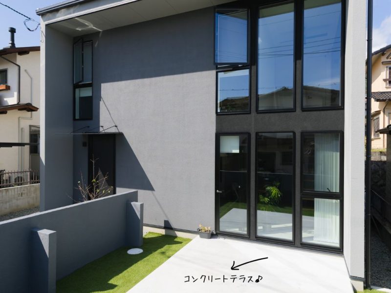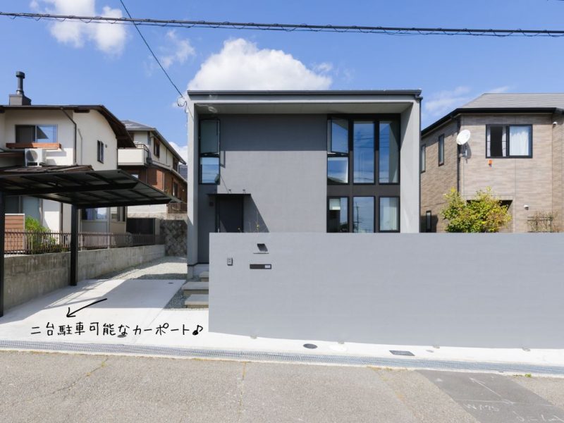 前を通る人からの視線を遮る擁壁と、お家の外壁のカラーをグレーに統一することで、とても広くスタイリッシュな印象に✨